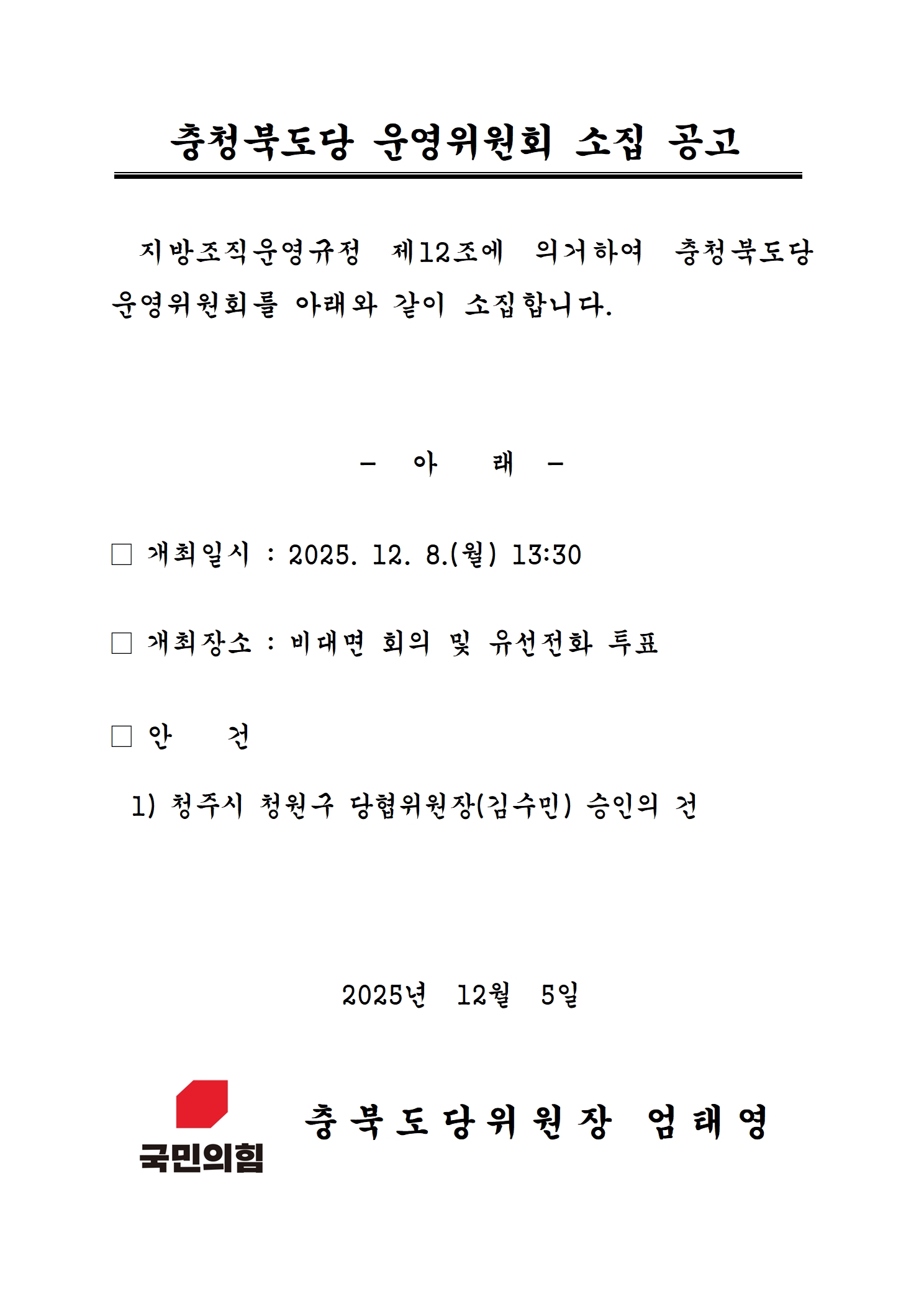 Á¦¸ñ ÃæºÏµµ´ç ¿î¿µÀ§¿øÈ¸ °³ÃÖ °ø°í