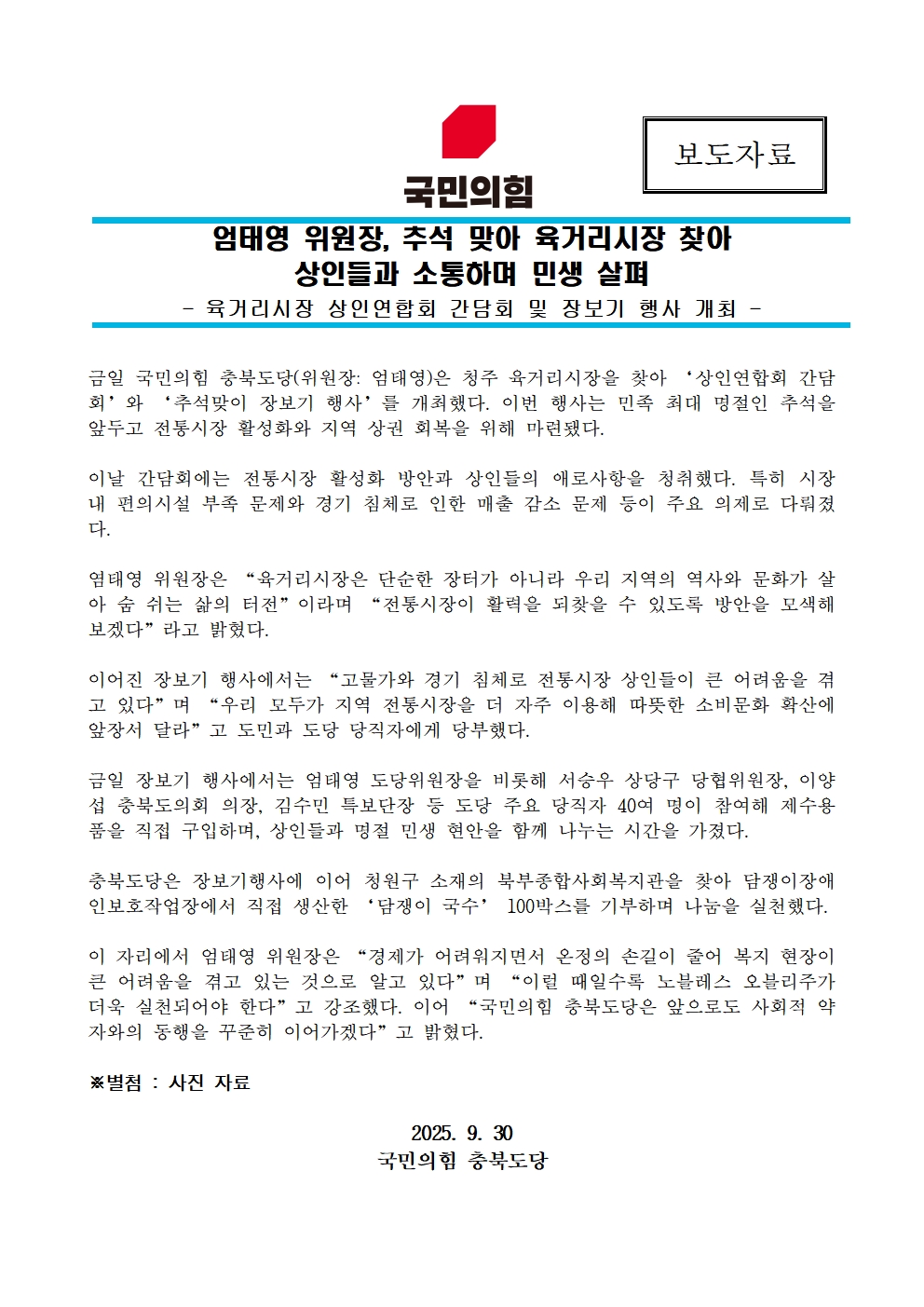 Á¦¸ñ 20250930 ¾öÅ¿µ À§¿øÀå, Ãß¼® ¸Â¾Æ À°°Å¸®½ÃÀå ã¾Æ »óÀεé°ú ¼ÒÅëÇÏ¸ç ¹Î»ý »ìÆì