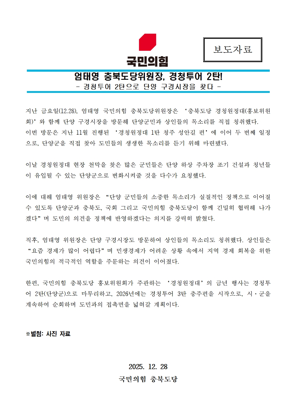 Á¦¸ñ 20251228 ¾öÅ¿µ ÃæºÏµµ´çÀ§¿øÀå, °æÃ»Åõ¾î 2ź!
