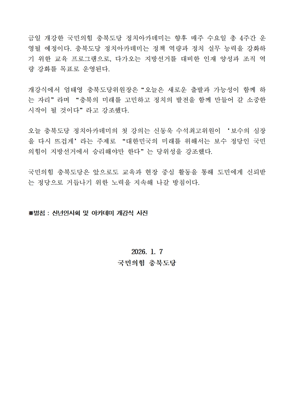 Á¦¸ñ 20260107 ±¹¹ÎÀÇÈû ÃæºÏµµ´ç, 2026³â ½Å³âÀλçȸ °³ÃÖ ¹×Á¤Ä¡ ¾ÆÄ«µ¥¹Ì °³°­