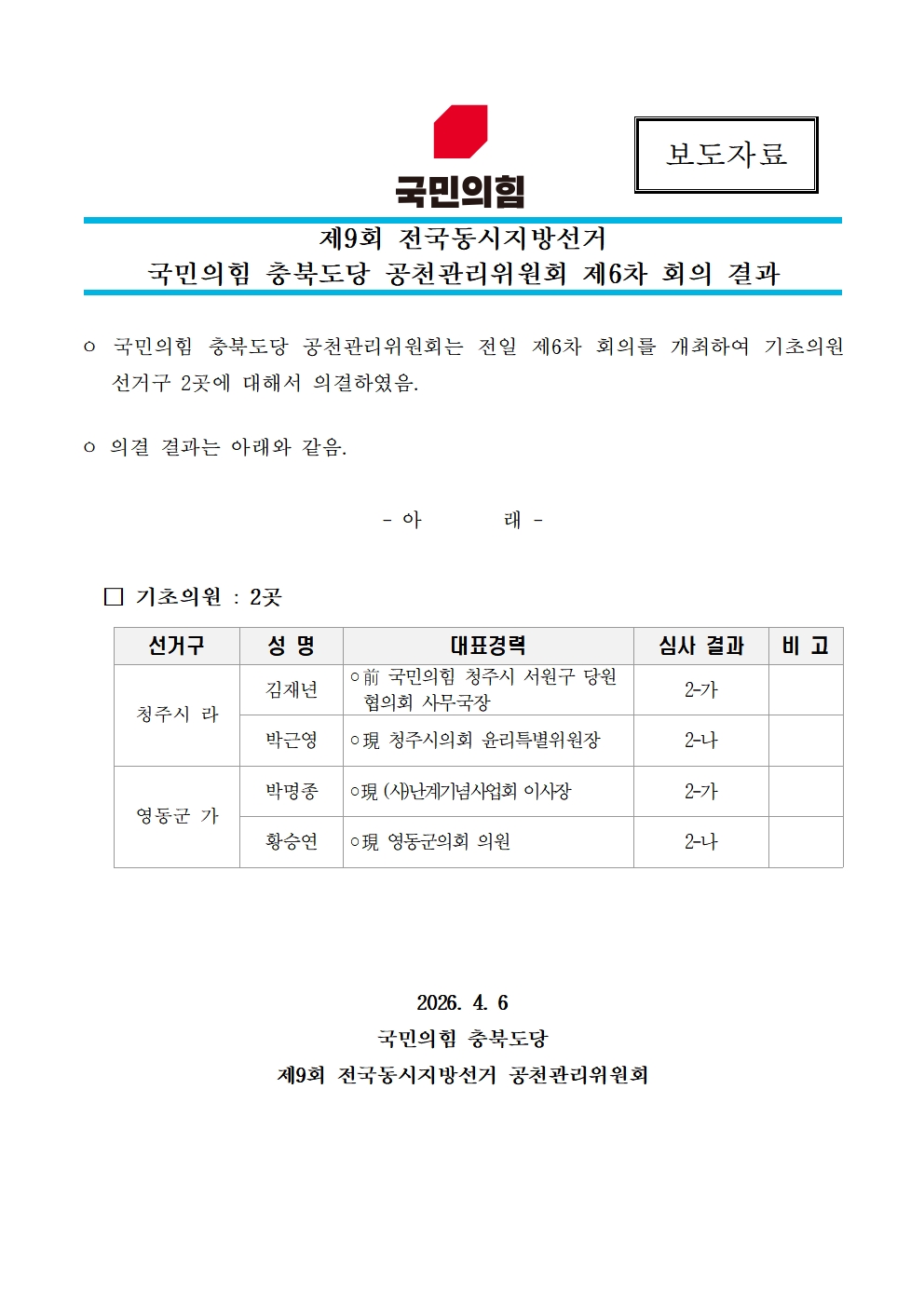 Á¦¸ñ Á¦9ȸ Àü±¹µ¿½ÃÁö¹æ¼±°Å ÃæºÏµµ´ç °øÃµ°ü¸®À§¿øÈ¸ Á¦6Â÷ ȸÀÇ °á°ú