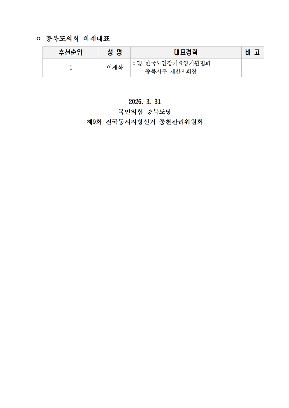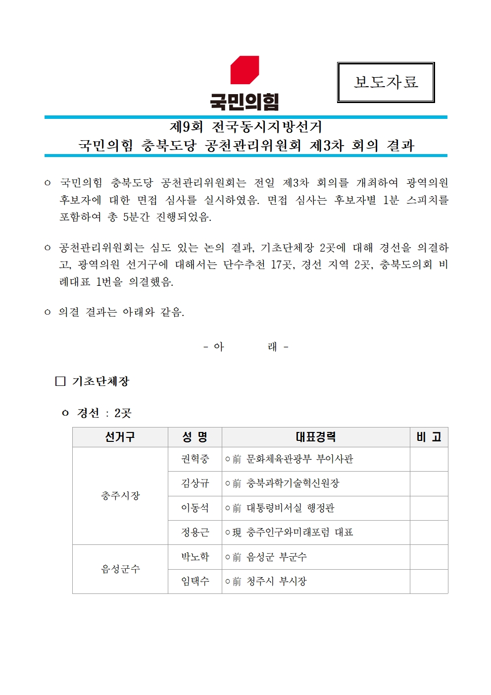 Á¦¸ñ Á¦9ȸ Àü±¹µ¿½ÃÁö¹æ¼±°Å ÃæºÏµµ´ç °øÃµ°ü¸®À§¿øÈ¸ Á¦3Â÷ ȸÀÇ °á°ú